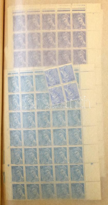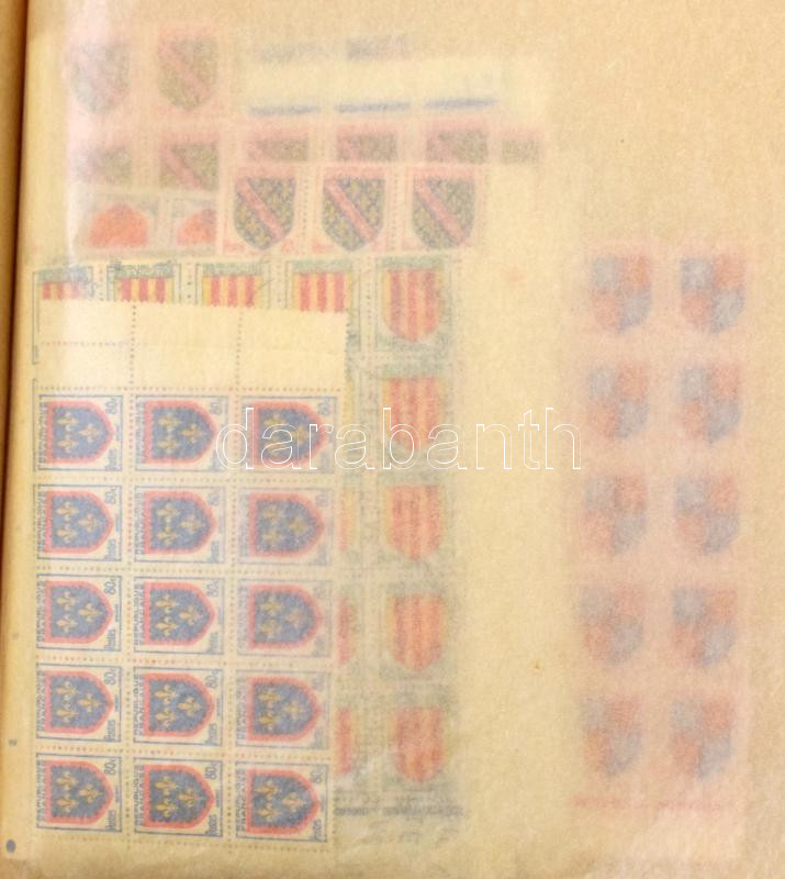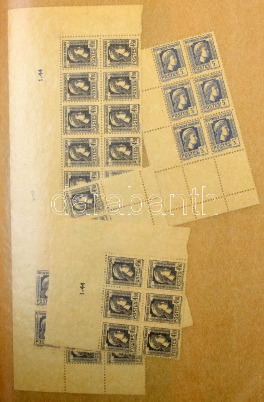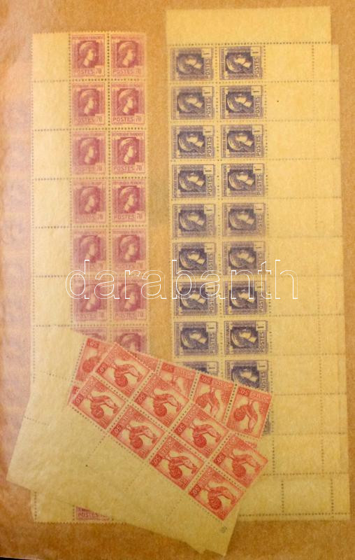 Franciaország régi ívdarabok, összefüggések, néhány száz bélyeg 14 lapos pergamenes ívberakóban