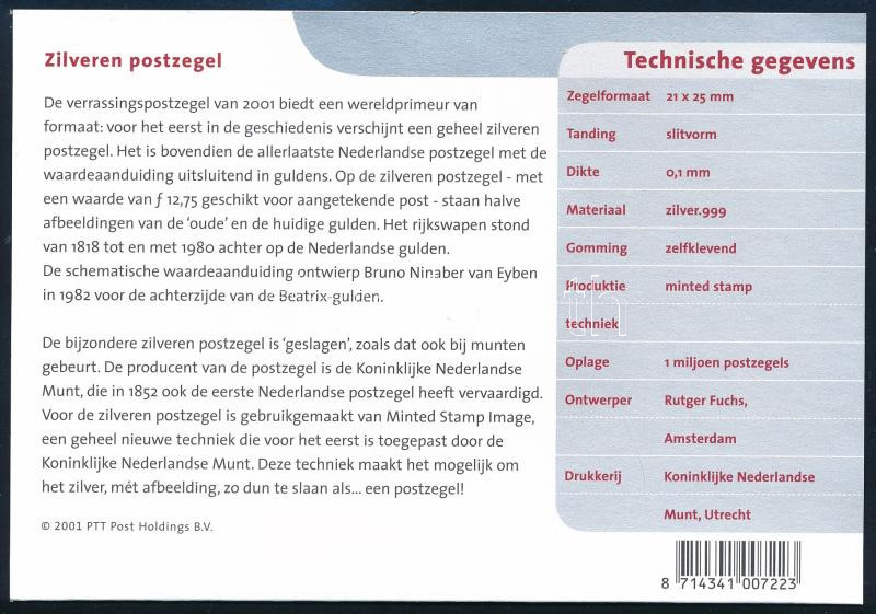Hollandia 2001 A gulden pénzrendszer vége ezüst bélyeg díszcsomagolásban Mi 1928