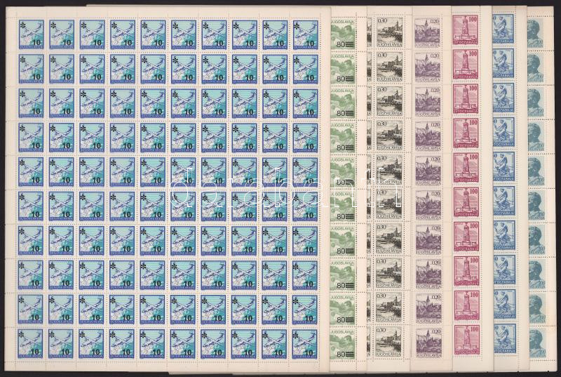 Jugoszlávia 100-as ívek, 70 db-os ív tétel, 7 különféle összesen 7.000 bélyeg