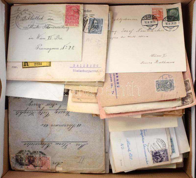 Kb 200-300 db régi és modern osztrák díjjegyes, levél, kivágás dobozban