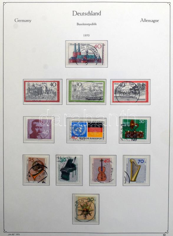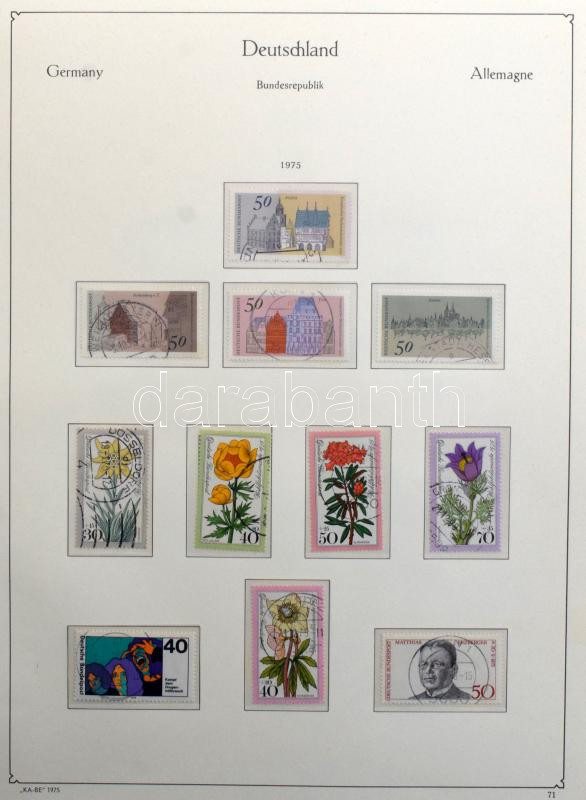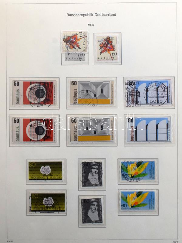 NSZK főleg bélyegzett gyűjtemény az 1971-1983 közötti időszakból, KABE falcmentes előnyomott albumban gyűrűs borítóval