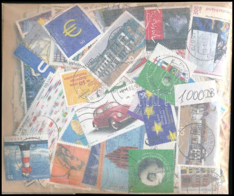 NSZK + Berlin 1.000 db bélyeg, köztük eurós értékek is, ömlesztve zacskóban