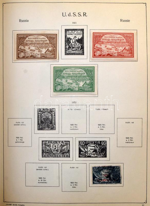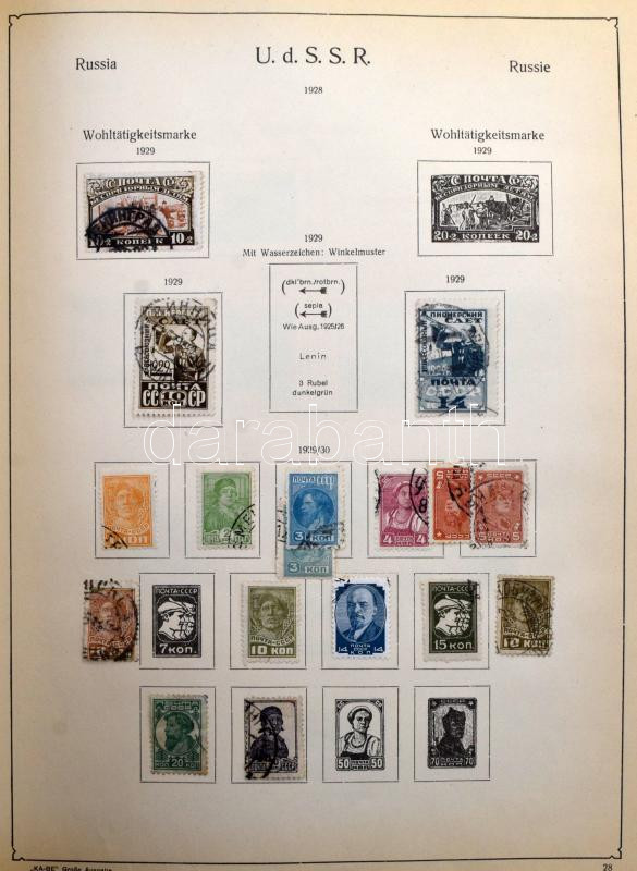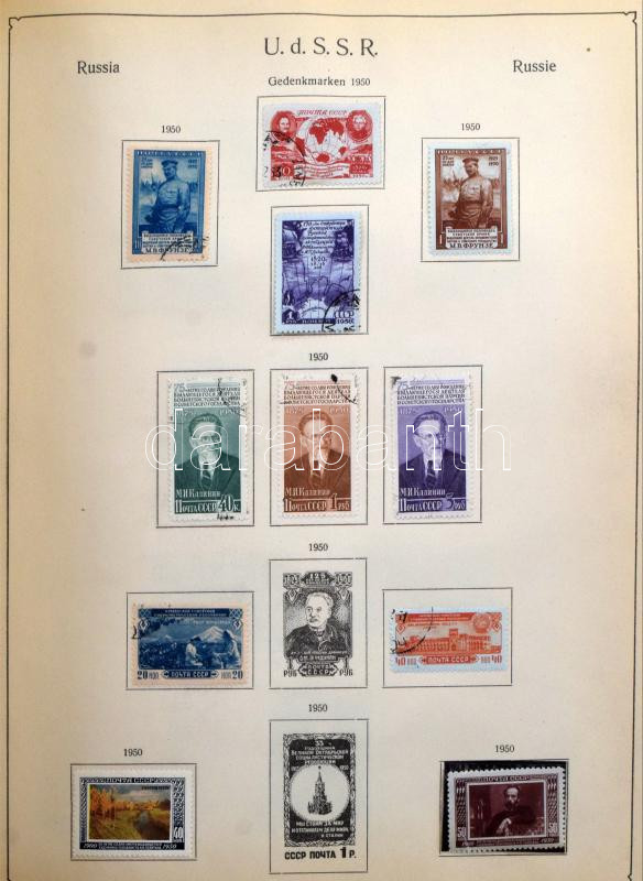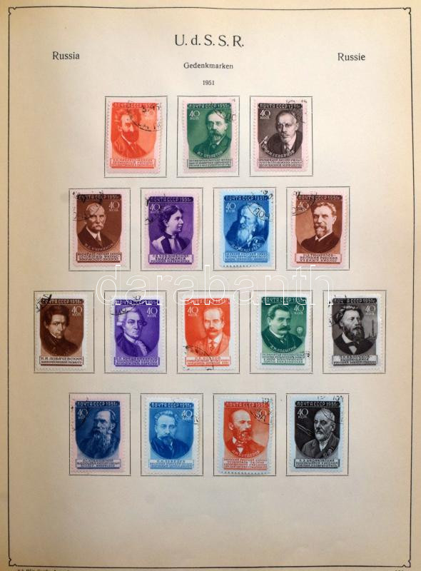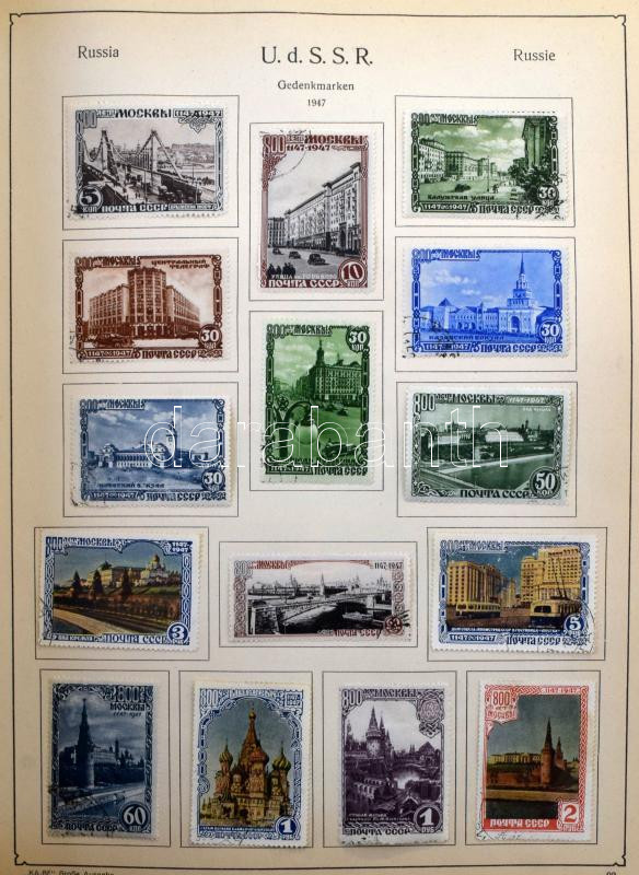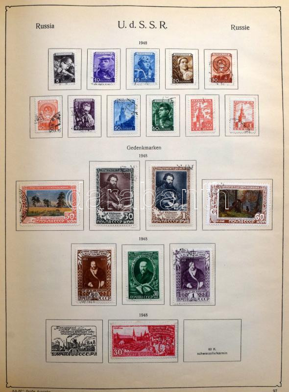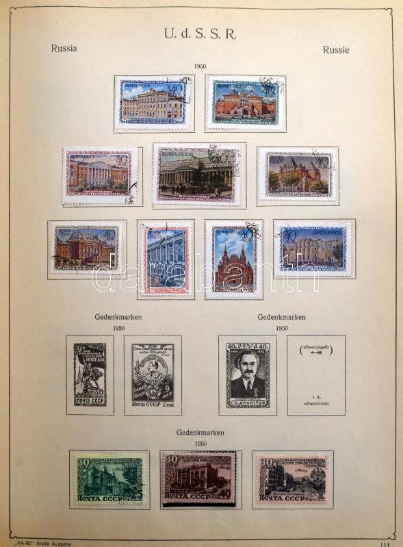 Oroszország és Szovjetunió gyűjtemény hatalmas 300 oldalas KABE előnyomott albumban, csavaros borítóval az 1880-as 1960-as évekből, 1940 előtt gyengécske, a 40-50-es évek erősebb, jobb sorokkal, értékekkel (pl: a Magas házak sor 5 értéke). Bontásra, kiegészítésre kiváló! Érdemes megnézni!
