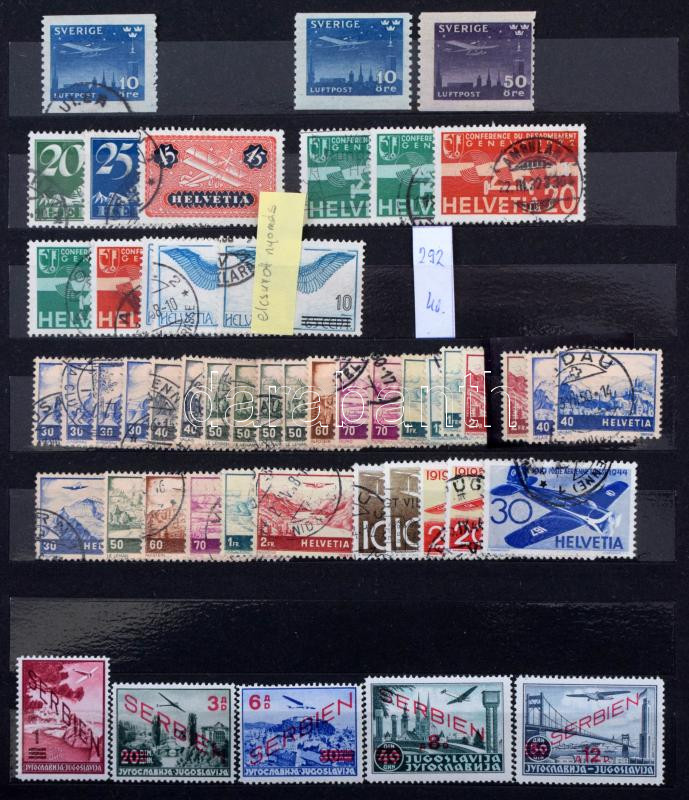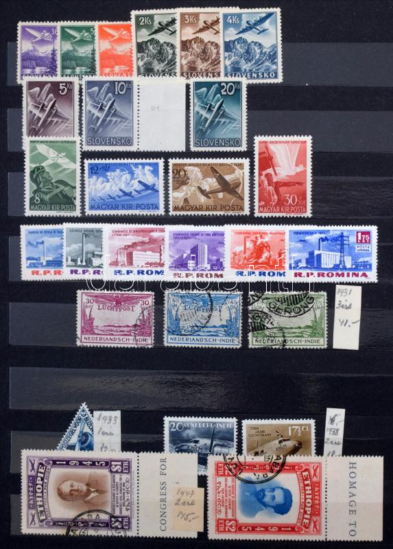 Repülő, légiposta ögyűjtemény maradvány A4-es berakóban, jobbakkal, másodpéldányokkal, benne kevés magyar is