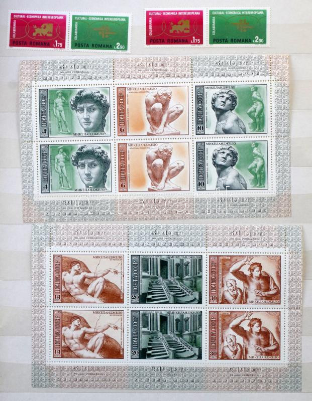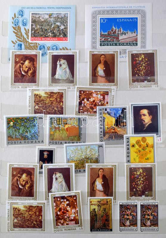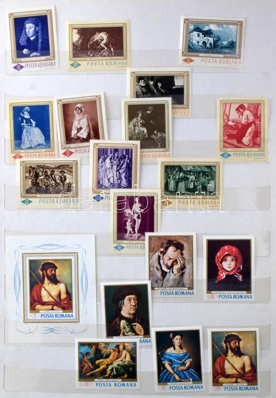 Románia főleg festmény motívum gyűjtemény hozza kevés egyéb ország motívum kiadásai 14 lapos nagy berakóban (a végén szokatlanul kevés bélyegzett anyag)