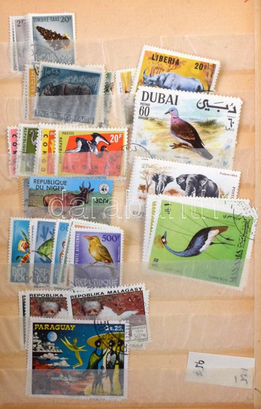 Vegyes külföldi bélyegek 4 db berakóban, benne sok állat és virág motívum, több ezer darab bélyeg