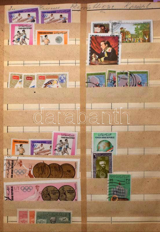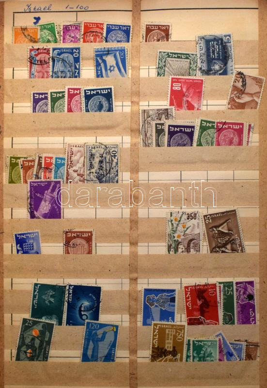 Vegyes külföldi bélyegek berakólapokon, kb 3-4 ezer darab bélyeg, benne Korea, Libéria, Mongólia, Jemen, Irán, Izrael stb.