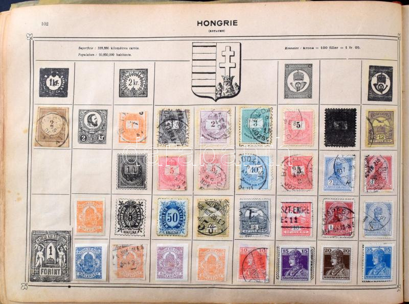 Maury egyszerűsített világalbum, benne több ezer különböző bélyeg, változó intenzitású országgyűjtemények, rengeteg ritkán látható bélyeg, érdekességek.