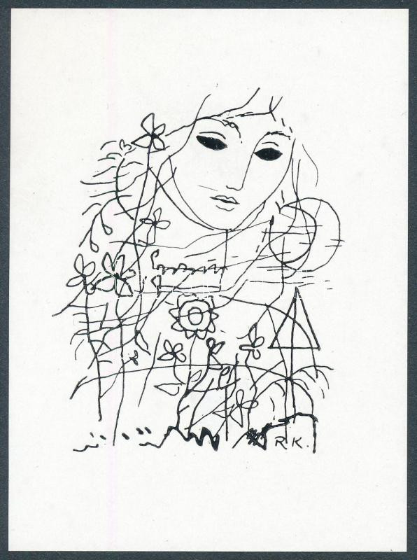 Reich Károly (1922-1988): Álmodozó. Klisé, papír, jelzett a klisén, 11×8 cm