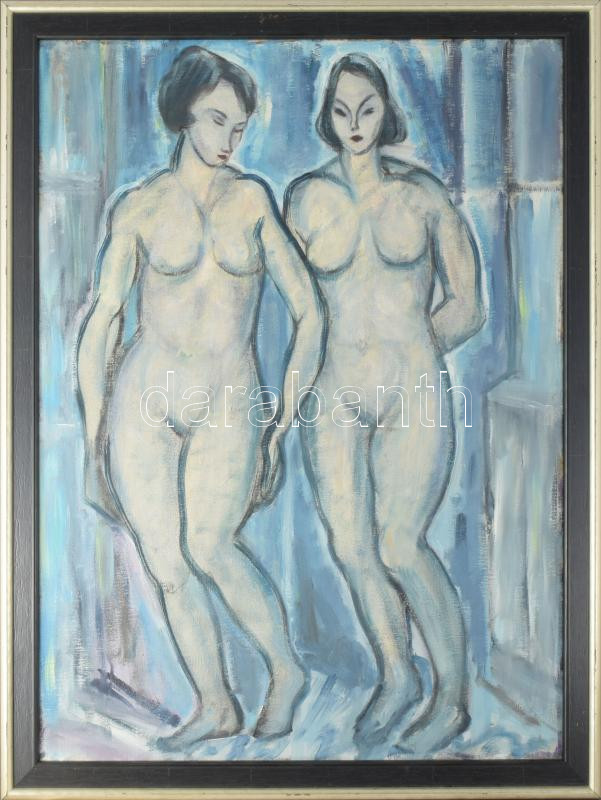 Jelzés nélkül, 1920-40 körül: Női aktok. Olaj, vászon. Dekoratív fakeretben. 80×60 cm