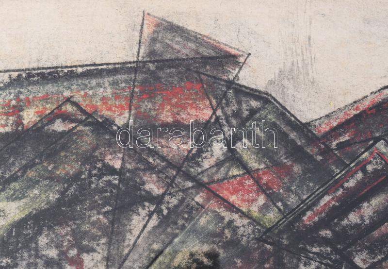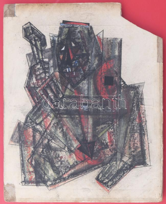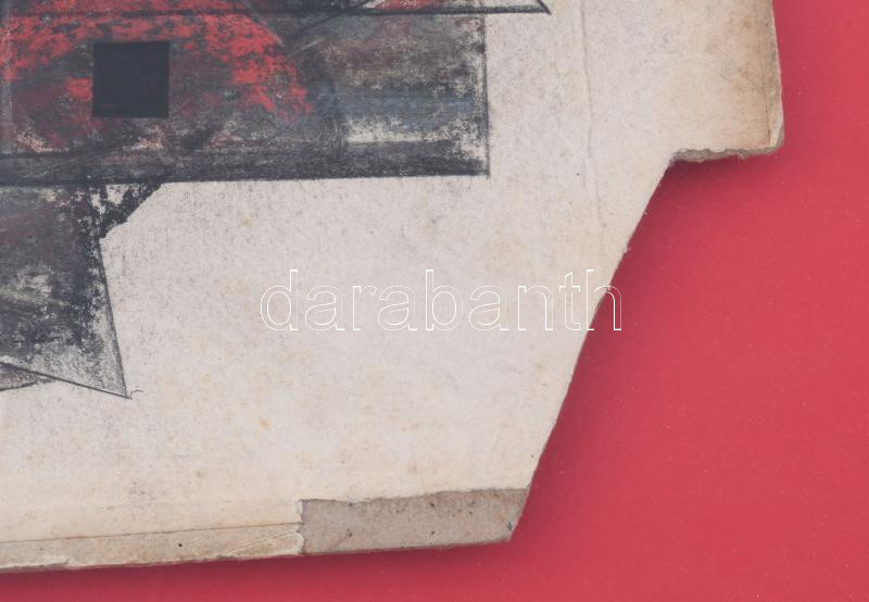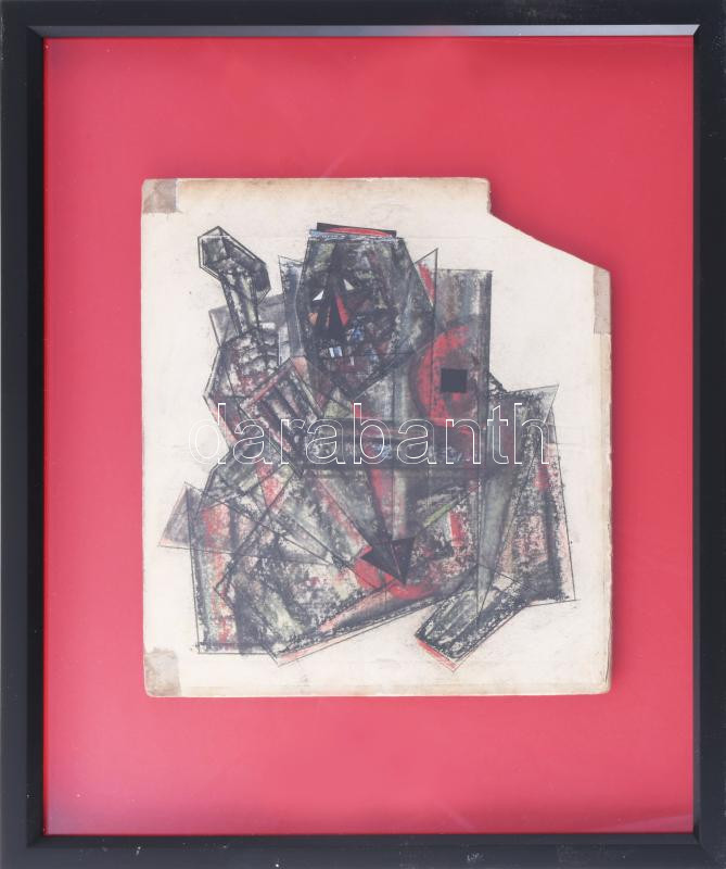 Jelzés nélkül: Konstruktivista kompozíció. Vegyes technika, papír. Sérült. Kartonra kasírozva. Üvegezett fakeretben. 32×28 cm