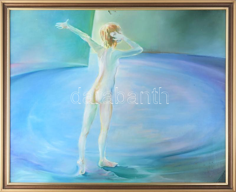 Jelzés nélkül (XX. sz. vége): Álló női akt. Olaj, farost. Kissé sérült. Fakeretben. 55×68 cm