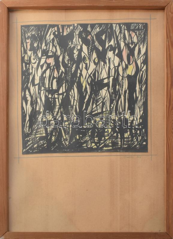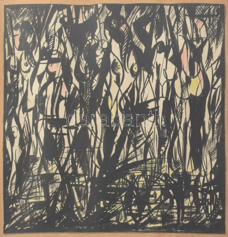 Olvashatatlan (Marosi?) jelzéssel: Női aktok. Vegyes technika, papír, üvegezett fakeretben, 22,5×21,5 cm