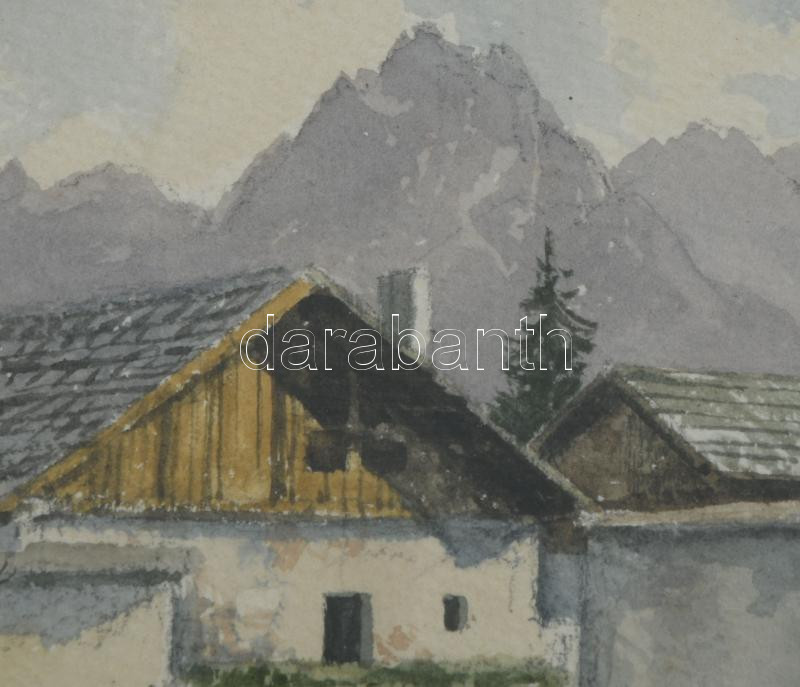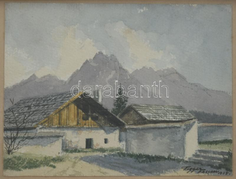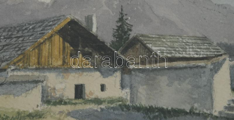 Olvashatatlan jelzéssel: Passau környéki táj, 1938. Akvarell, papír, üvegezett fakeretben, 10×12 cm