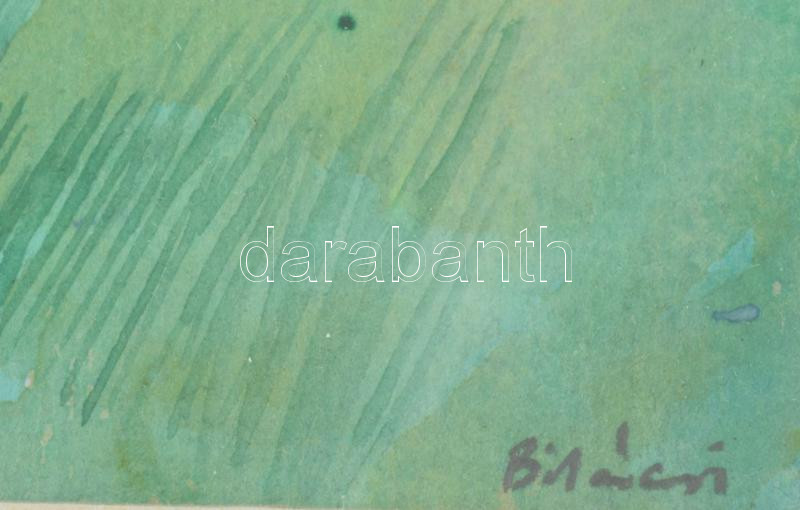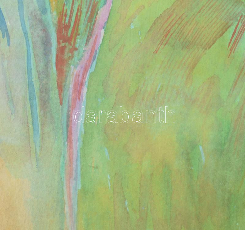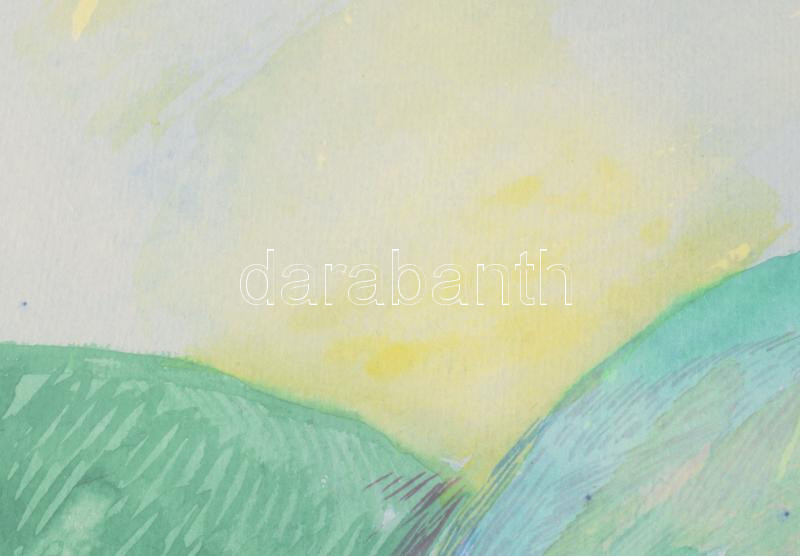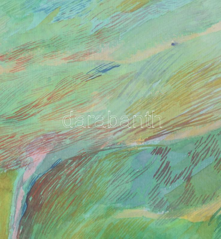 Bikácsi Daniela (1943- ): Elképzelt táj, akvarell, papír, jelzett. Dekoratív, üvegezett fa keretben, 46×29,5 cm