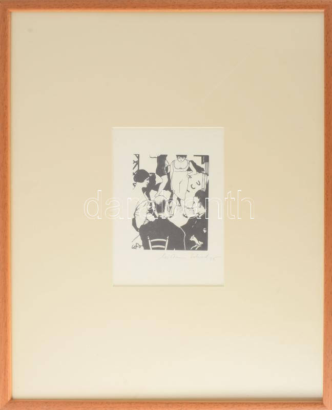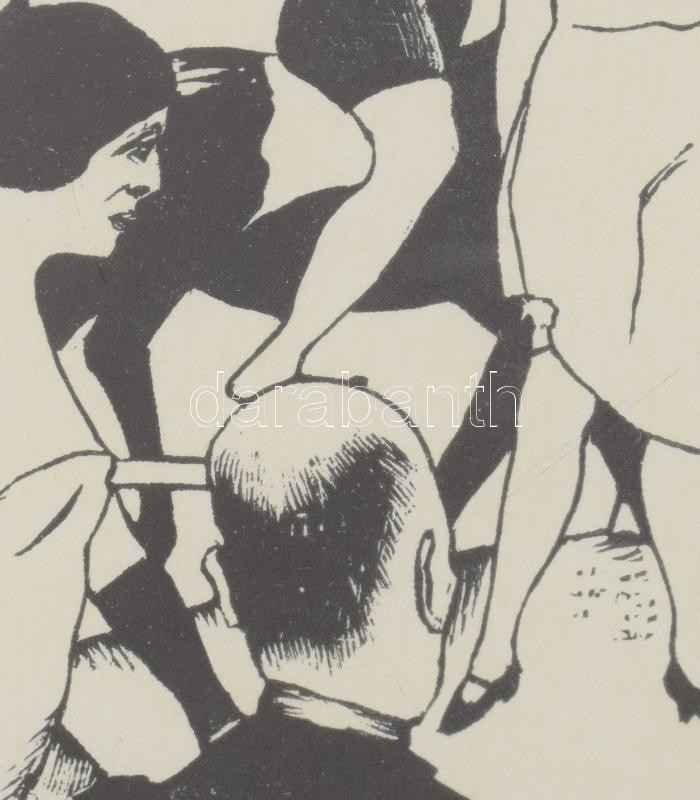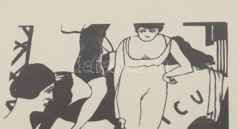 Christian Schad (1894-1982): Circus, 1925, utánnyomás 1970 körül (Panderma kiadás). Fametszet, papír, jelzett. Üvegezett keretben. 12x9,5 cm / Christian Schad (1894-1982): Circus, 1925, later print around 1970 (edition Panderma). Woodcut on paper, signed. Framed with glass. 12x9,5 cm.