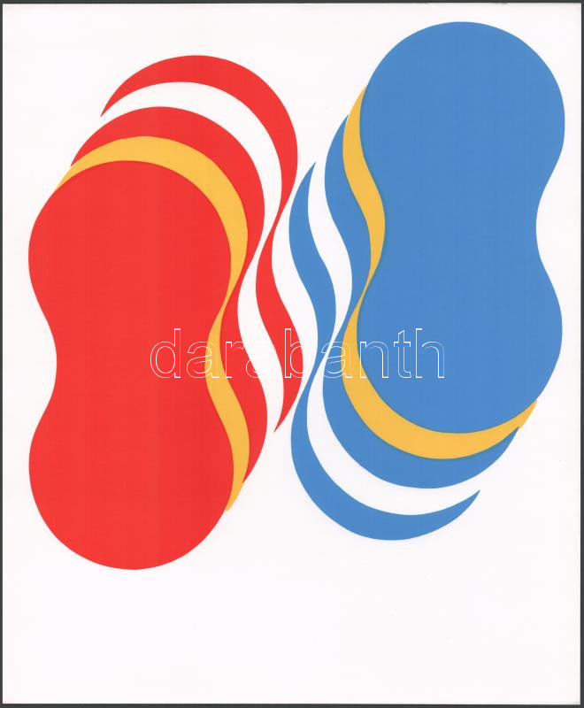 Fajó János (1937-2018): Piskóták, 1975. Szitanyomat, karton. Jelzés nélkül. Fajó János a Kultúrális Kapcsolatok Intézetében (K.K.I.) rendezett kiállítására, 1975-ben megjelent mappájából. Közepén hajtásnyommal. 34,5x29 cm.