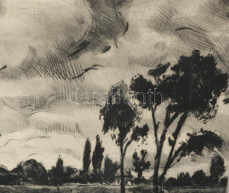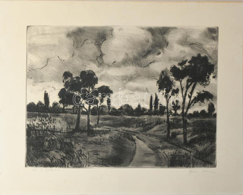 Fehér Ilona (1913-1983): Út a faluba. Rézkarc, papír, jelzett. Kartonra kasírozva. 29x39,5 cm