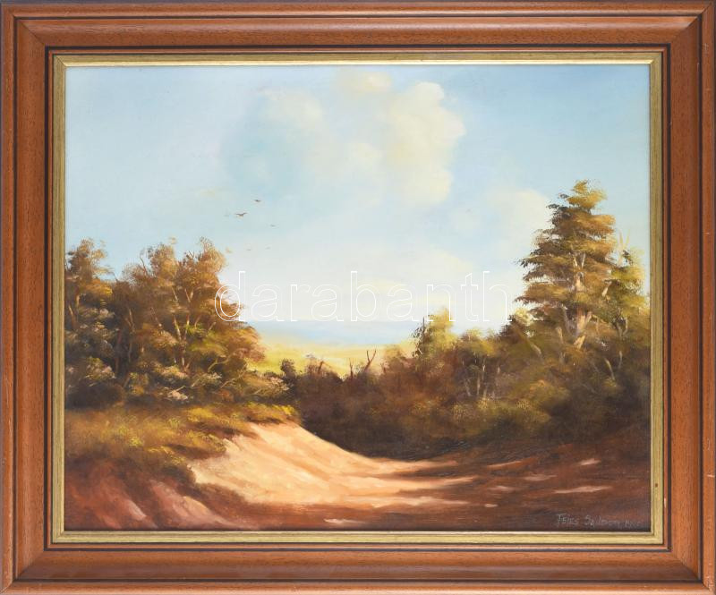 Fejes Sándor (1964-): Őszi táj. Olaj, farost, jelzett, fakeretben, 40×50 cm