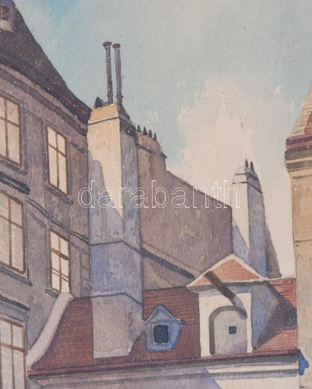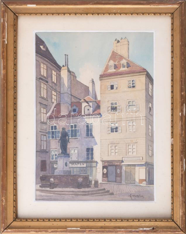Hoffelner, Franz (1875-1936): Bécs, Franziskanerplatz. Akvarell, papír, jelzett. Üvegezett, sérült fakeretben. 27×19 cm
