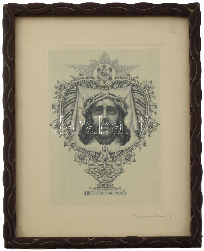 Horváth Endre (1896-1954): Krisztus, 1928. Rézkarc, papír, jelzett, üvegezett fakeretben, 17,5×12 cm