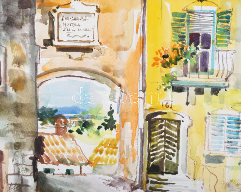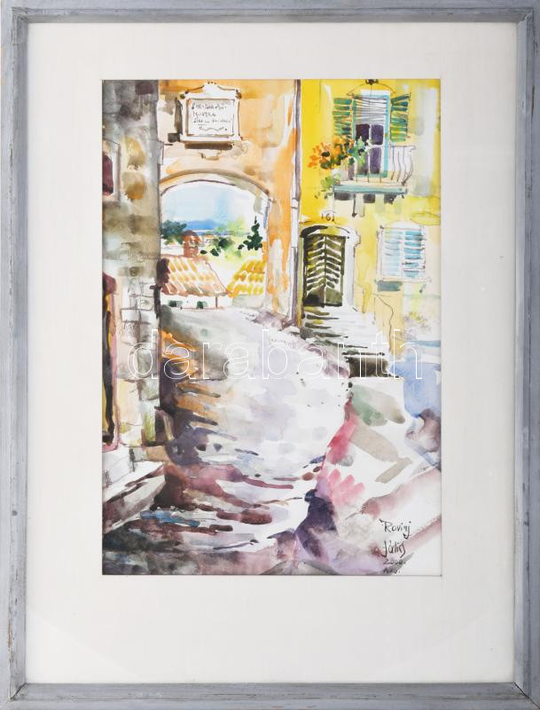 Jálics Gyula (1940-2016): Rovinj ( Horvátország), 2000. Akvarell, papír, jelzett. Üvegezett fakeretben, 36×24,5 cm.