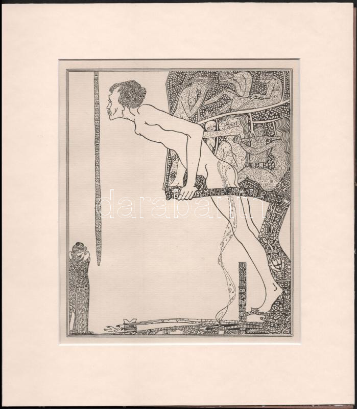 Kozma Lajos (1884-1948): Támaszkodva. Nyomat, papír, jelzett a nyomaton, paszpartuban, 19,5×16,5 cm