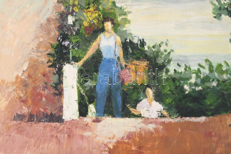 Magistrák Károly (-): Távolban a vitorlások, 1980. Olaj, vászon, jelzett. Fakeretben. 60×45 cm