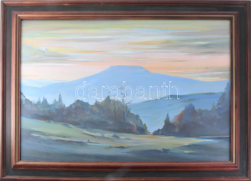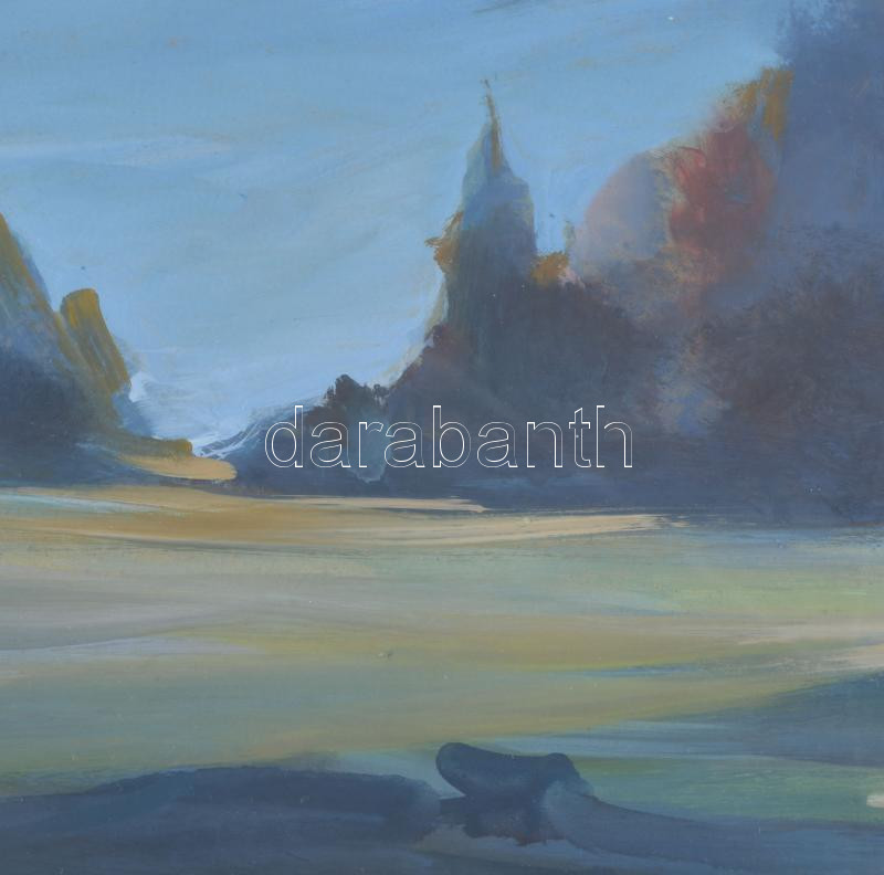 Mizser Pál (1941-2021): Hajnalpír. Tempera, farost, jelzett, hátoldalán Szőnyi István Alkotóközössége címkéjével. Üvegezett fakeretben, 50x70 cm