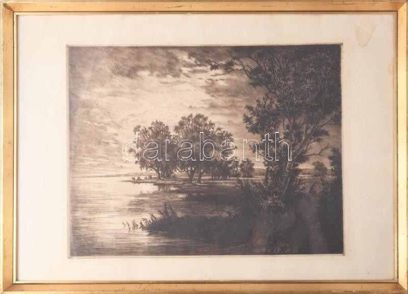 Paulovits Pál (1892-1975): Parti nyárfa. Rézkarc, papír, jelzett, üvegezett fakeretben. Lap széle kissé foltos. 33×42 cm