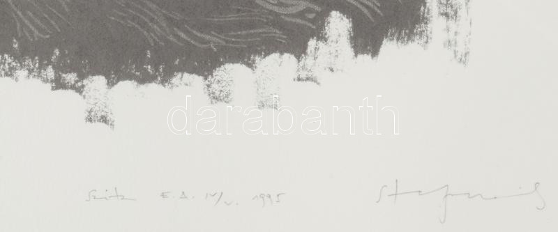 Stefanovits Péter (1947-): Ősz, 1995. Szitanyomat, papír, jelzett. Művészpéldány E.A. IV/V. számozással. Lap alján ázásnyommal. Üvegezett fakeretben. 29x20 cm