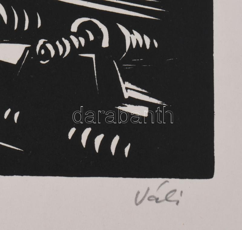 Váli Zoltán (1910-1994): Automatizált téglagyár. Linómetszet, papír, jelzett. 31x40 cm