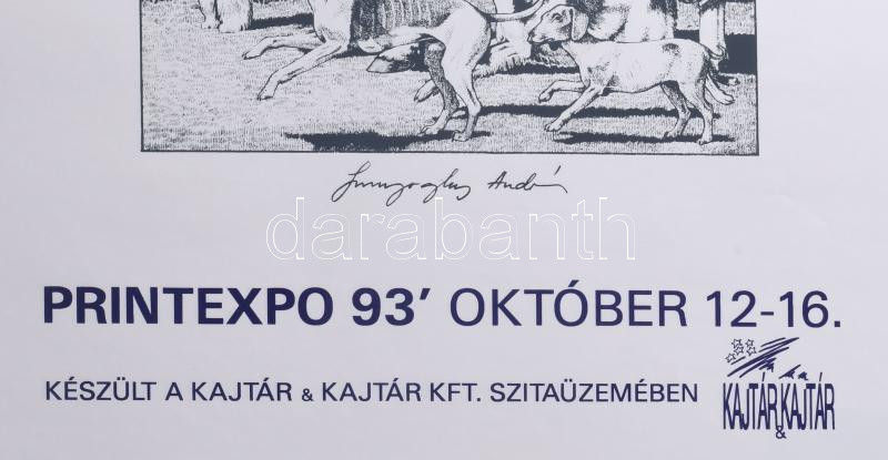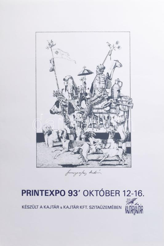 1993 Printexpo '93, Szunyoghy András művével illusztrált plakát. Szitanyomat, papír. Jelzett a plakáton. 59×42 cm
