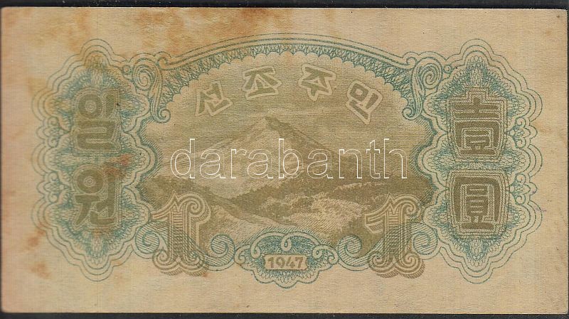 https://www.darabanth.com/en/52-Online-auction/52.0/Numismatics/~247/Eszak-Korea-1947-1W-vizjellel-TIIplus-pici-foltok-csak-egyszer-reszben-hajtott~II101608