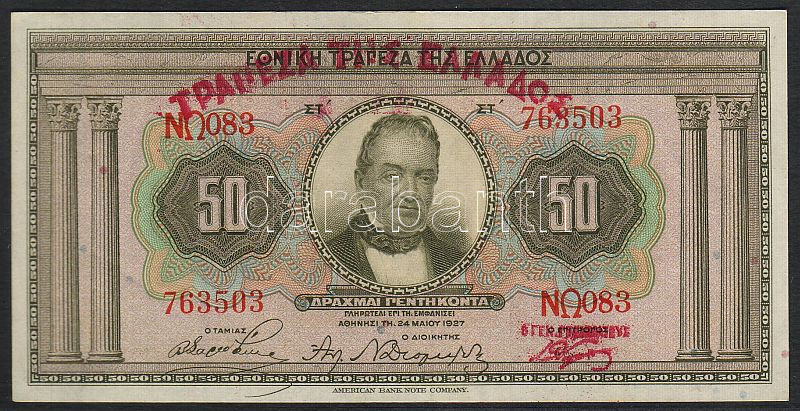 Görögország 1927.május 24. 50Dr T:II+ Csak egyszer hajtva!