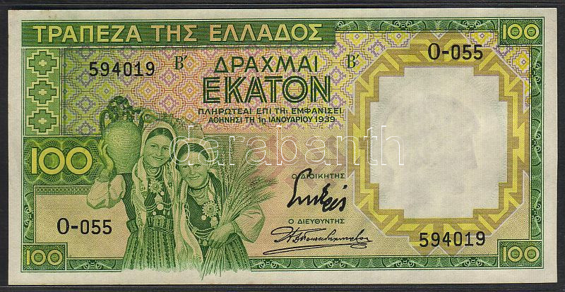 Görögország 1939. 100Dr T:I