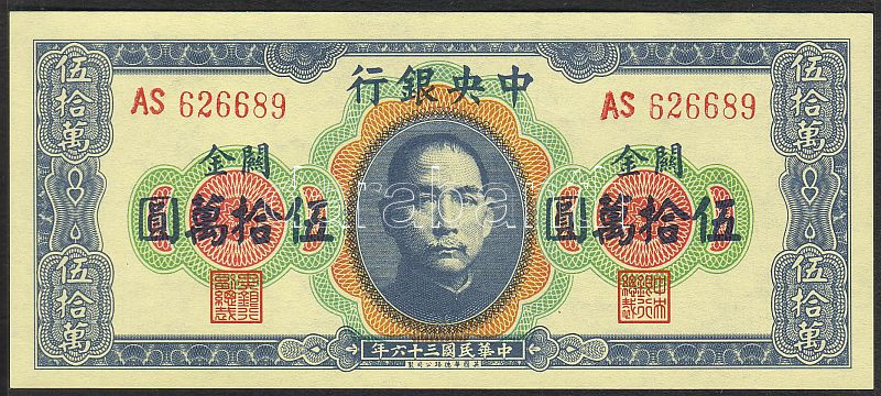 Kína/Central Bank 1940-es évek 500.000CGU T:I
