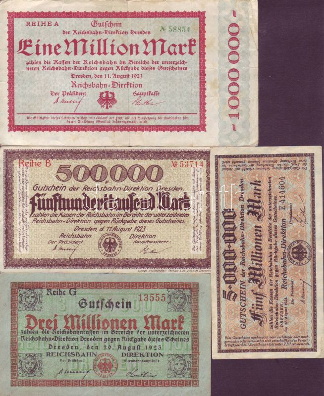Német Birodalom/Reichsbahndirektion Dresden 1923. 500.000M, 1000,000M, 3000.000M, 5000.000M T:II+,II