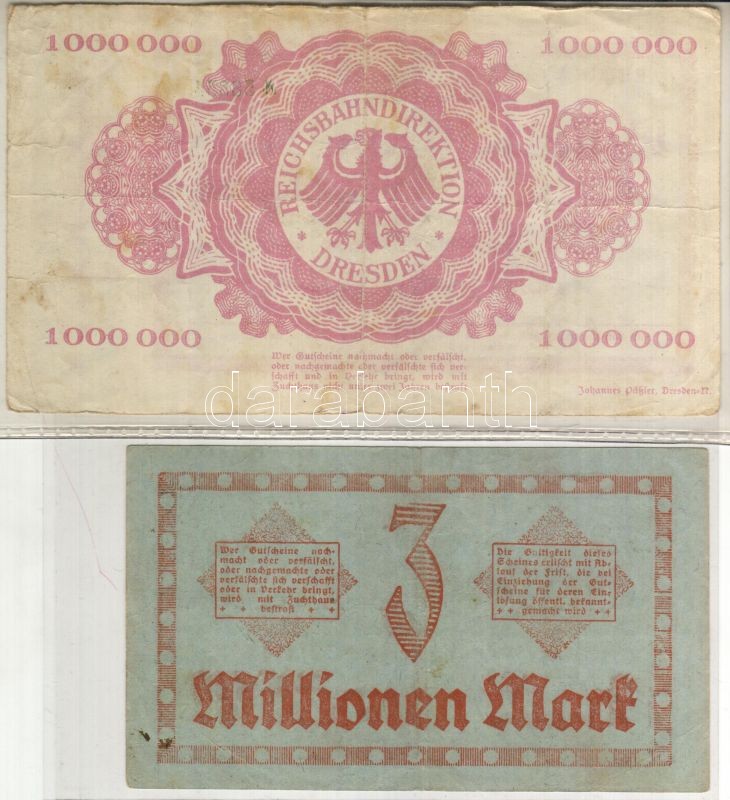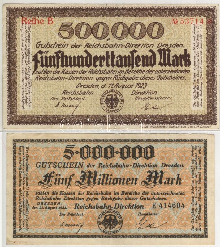 Német Birodalom/Reichsbahndirektion Dresden 1923. 500.000M, 1000,000M,...