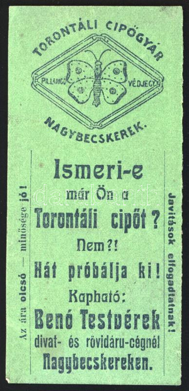ca 1910 Torontáli cipőgyár reklám cédula 5x11 cm
