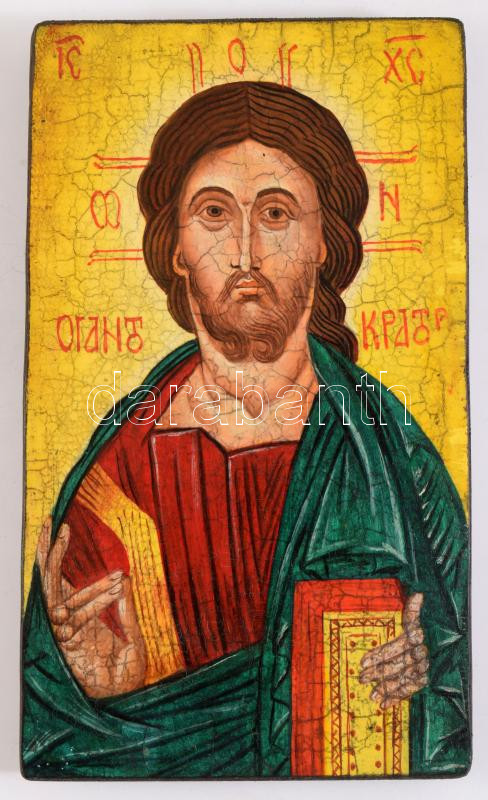 Régi bolgár ikon modern másolata. Festett, fa. 12x20 cm