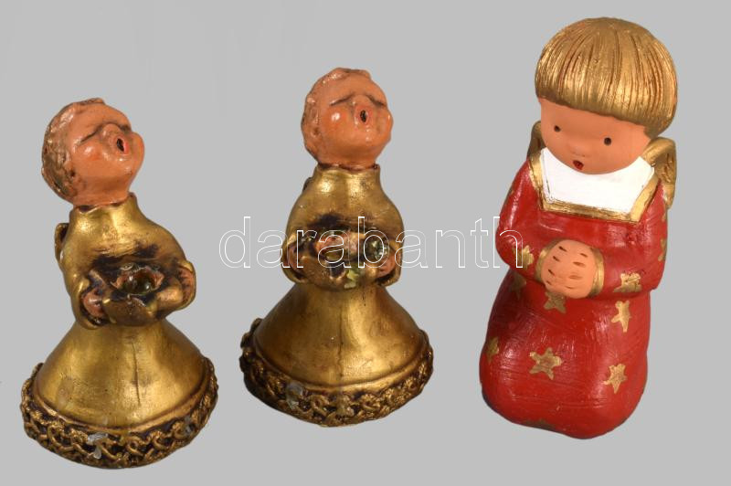 3 darab éneklő angyal figura, közte kerámia, jelzett, m: 15 cm alatt