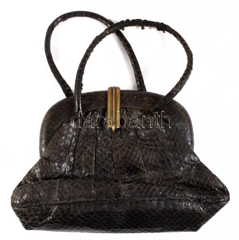 Régi kígyóbőr női táska, kb. 25x18 cm