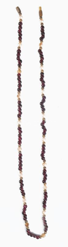 Tenyésztett gyöngy és gránát szemes nyaklánc, h: 55 cm