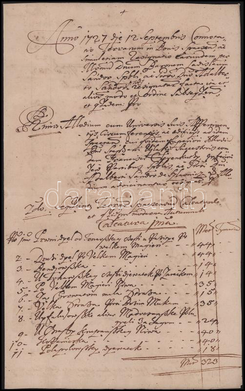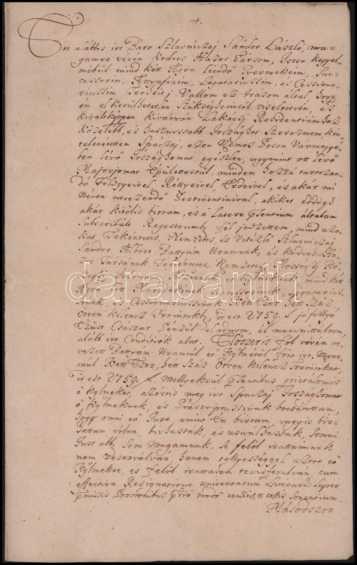 1747 A copy of the will of Baron László Szlavniczay of Nagyszombat (Trnava, SK) on two inscribed pages, as well as the 1727 Komárno estate census relating to the Szlavniczay family on two inscribed pages