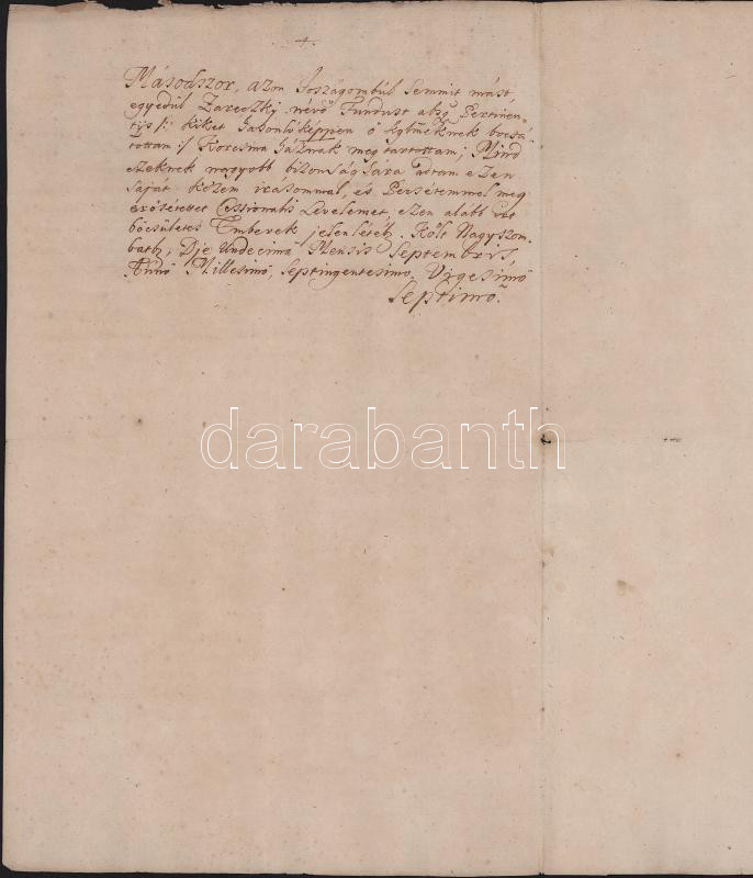 1747 Nagyszombat ( Trnava, SK) báró Szlavniczay László végrendeletének egykorú egyszerű másolata két beírt oldalon, valamint hozzá 1727-es a Szlavniczay családra vonatkozó Komáromi birtok összeírás két beírt oldalon