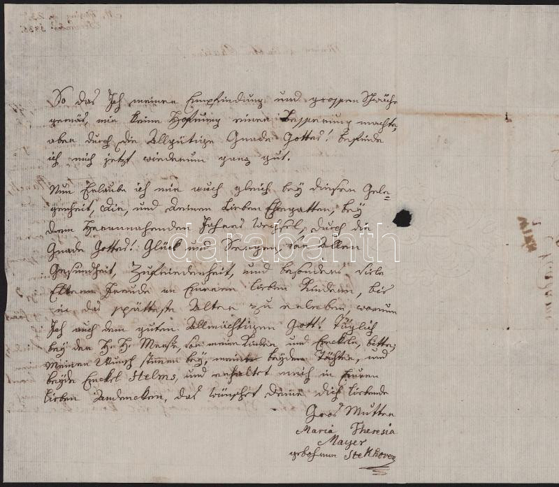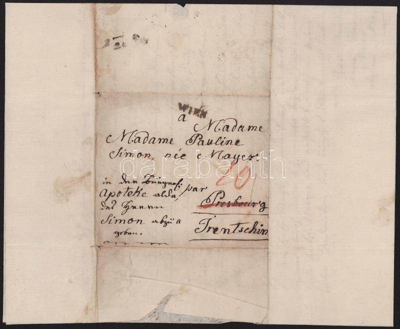 1836 Paulie Simon, née Mayer trencséni gyógyszertáros részére írt levél családi ügyekben 4 beírt oldalon / Trencin SK, letter to a pharmacist lady