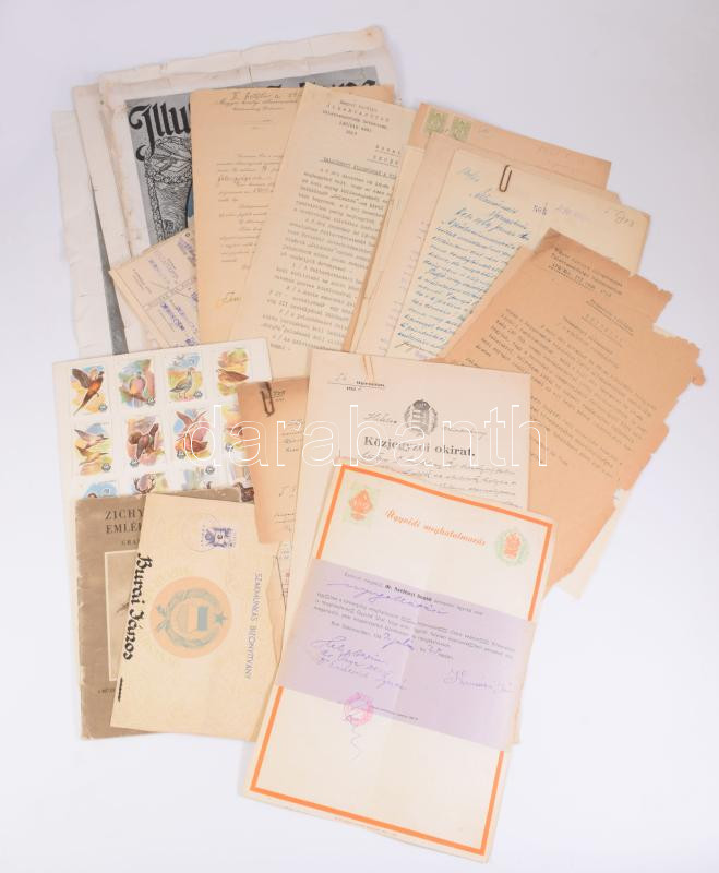 ca 1900-1940 Vegyes papírrégiség tétel, benne számos ügyvédi meghatalmazás, vasutas témájú okmányok, számla, stb.