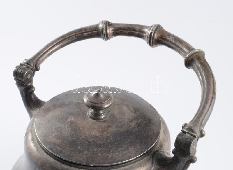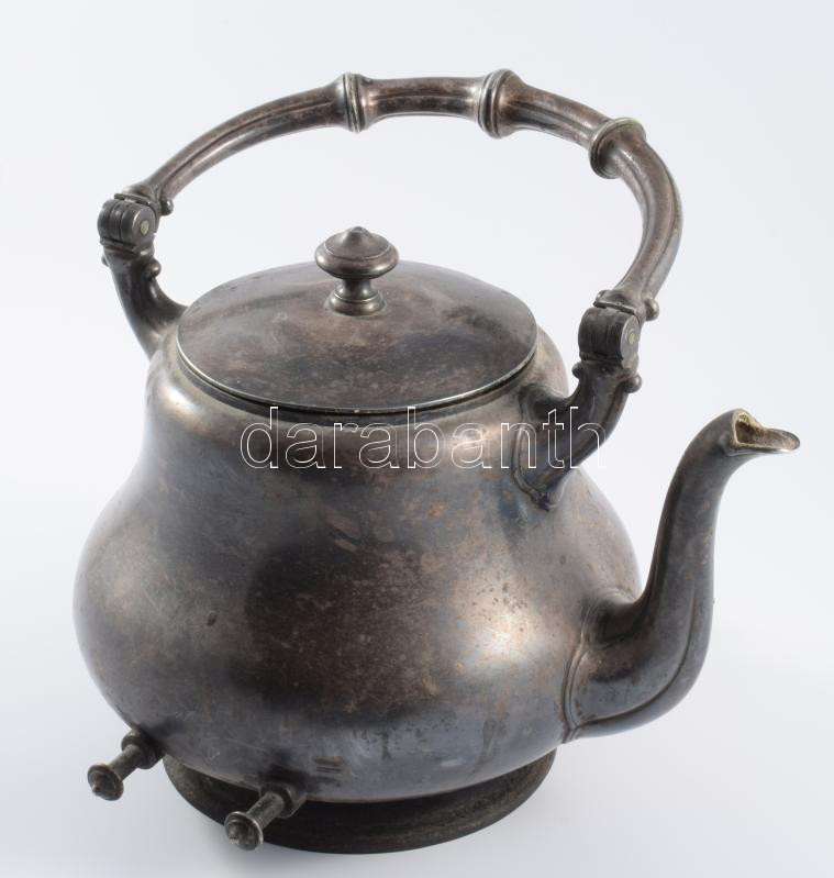 Antik ezüstözött teás kanna támasztó részekkel, m: 28 cm