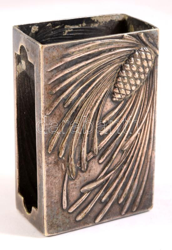 Antik tobozmintás ezüstözött gyufatartó, 4,5x3 cm